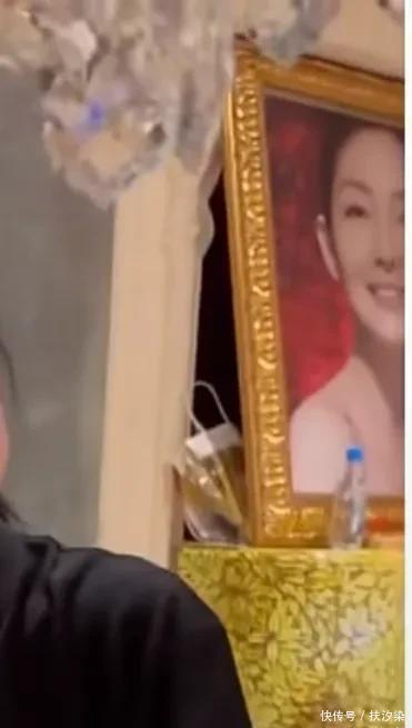 大S的遗像出镜了,被装进了金色的相框摆在黄色的柜子上,应该是S妈在家里设的小型灵堂,照片中的大S笑容明媚,让人惋惜。